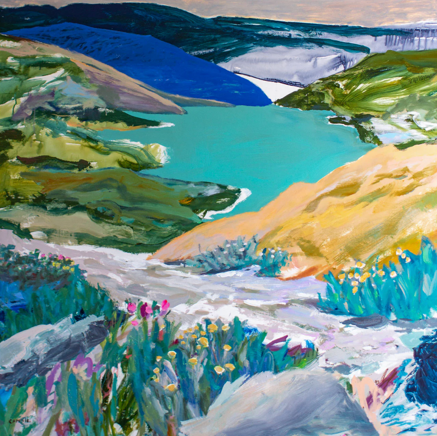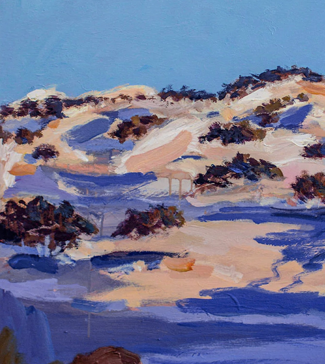 40 x 60cm mixed media on canvas, framed in raw Tasmanian oak.