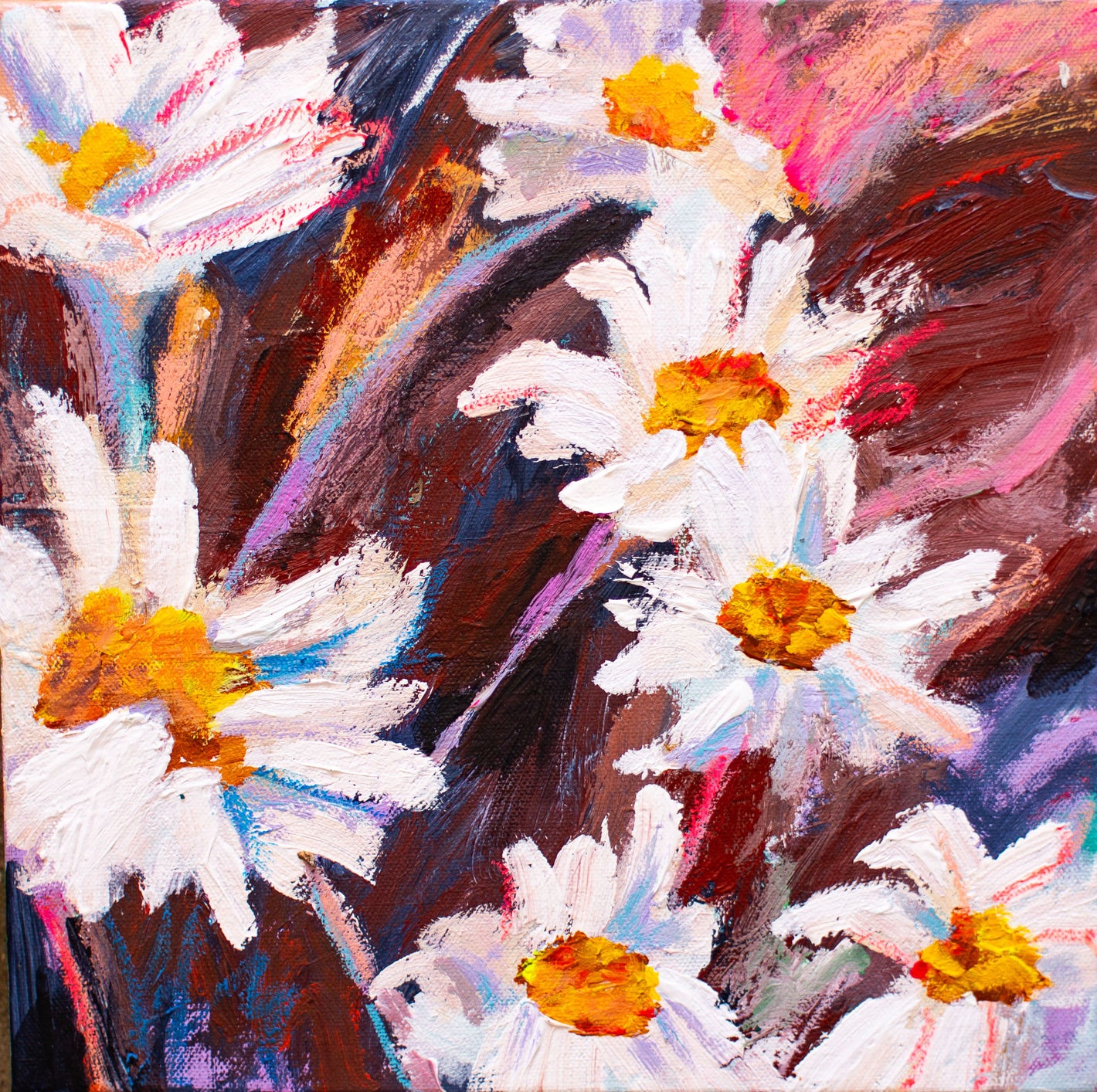 30cm (W) x 30cm (H) x 5cm (D) acrylic on canvas, floating Tasmanian oak frame (34x34cm).