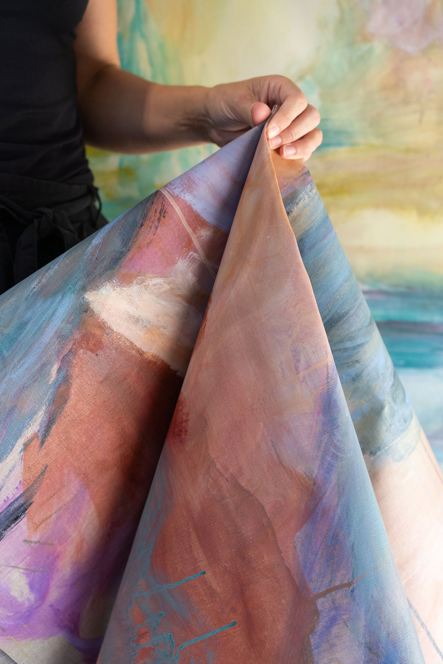 Raised on Ngunnawal country, where the bushland and Brindabella ranges formed her earliest visual language, Camille’s work is grounded in a deep connection to place and memory. Her paintings move between expansive landscape sensibilities and quieter contemplative moments, distilling environmental memory into fields of colour and gesture. Rather than depicting the landscape directly, she evokes its rhythm and atmosphere through abstraction. Colour theory underpins her compositions, guiding tonal relationships and emotional resonance while maintaining a sense of structural clarity.